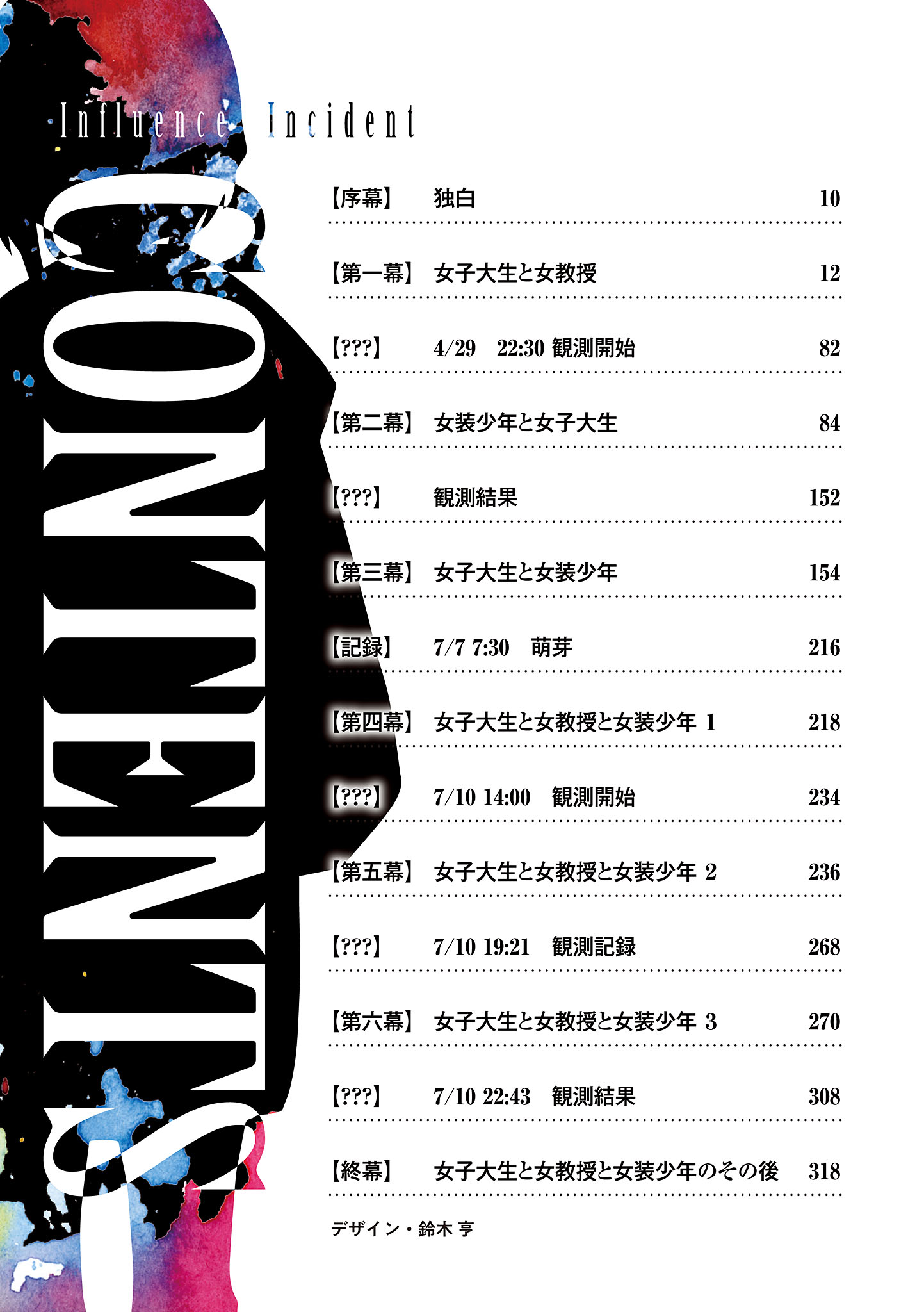 【Prologue】 Monologue 【Act One】 The Female College Student and the Female Professor 29 22:30 Observation Start 【Act Two】 The Crossdressing Boy and the Female College Student 【???】 Observation Results 【Act Three】 The Female College Student and the Crossdressing Boy 7 7:30 Inception 【Act Four】 The Female College Student, the Female Professor, and the Crossdressing Boy 1 【???】 7/10 14:00 Observation Start 【Act Five】 The Female College Student, the Female Professor, and the Crossdressing Boy 2 【???】 7/10 19:21 Observation Record 【Act Six】 The Female College Student, the Female Professor, and the Crossdressing Boy 3 【???】 7/10 22:43 Observation Results 【Final Act】 The Female College Student, the Female Professor, and the Crossdressing Boy: What Happened Next